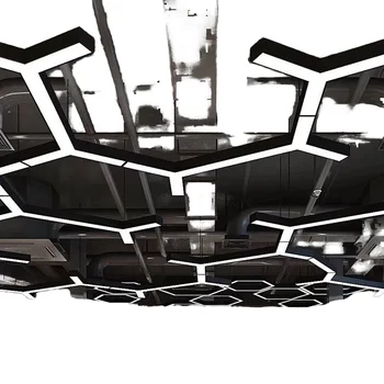 Modern Linear LED Hexagon Light Honeycomb Design for Gym and Auto Car Showroom 4S Shop Ceiling Lighting Fixtures